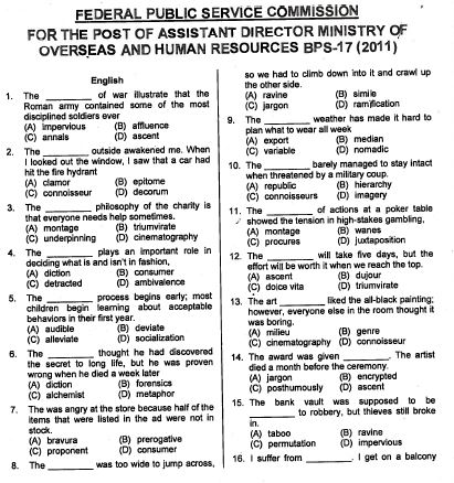 Assistant Director Ministry of Overseas and Human Resources Past Papers - PPSC,FPSC,NTS,OTS